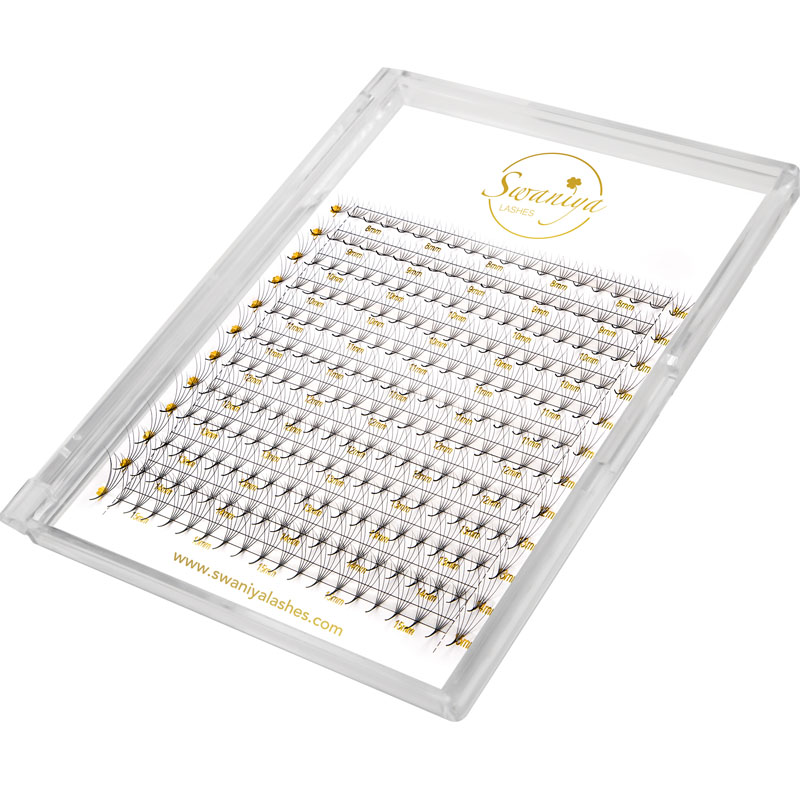 Som en av profesjonell produsent av høykvalitets glamorøs premade Super-fans øyenvippeutvidelser produsent, kan du være trygg på å kjøpe glamorøs premade superfans øyevippeforlengelser fra Swaniya®, og vi vil tilby deg den beste tjenesten etter salg og rettidig levering. Swaniya Premade Super-fans er omhyggelig laget med ultra-tynne vipper som er forhåndsfargede, noe som gir utseendet som et fyldigere og mer voluminøst utseende. De er perfekte for de som ønsker å legge til et dramatisk preg på vippespillet, uten at det går ut over kvaliteten.