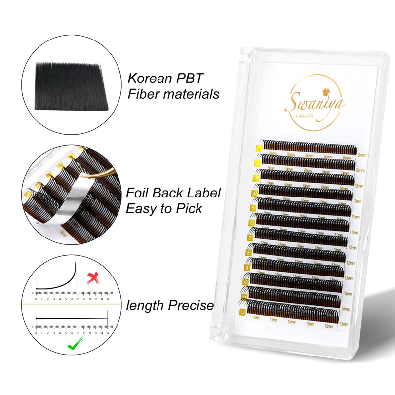 Swaniya sprø øyevippeforlengelser er en stil med øyevippforlengelse som er perfekt for de som vil ha et naturlig, men glamorøst utseende. Visete øyenvippeforlengelser har et utvalg av lengder, med lengre vipper som er blandet med kortere, sprø vipper. Denne kombinasjonen avgir et uanstrengt, sprø utseende som forbedrer din naturlige skjønnhet.
